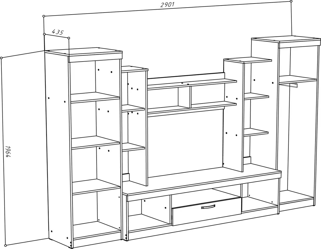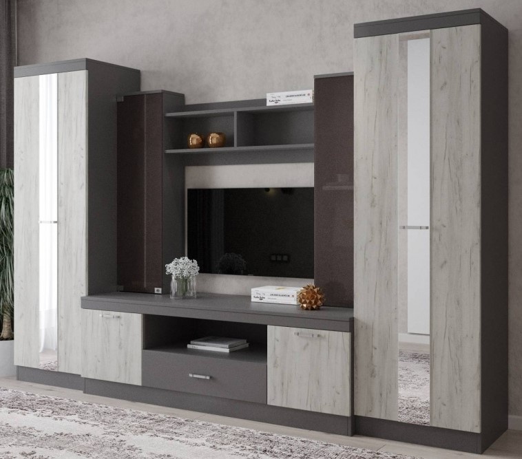 Гостиная ML-Mobila МЛ-6 Вар 2 Палермо 4/2900 Дуб Крафт Белый/Антрацит