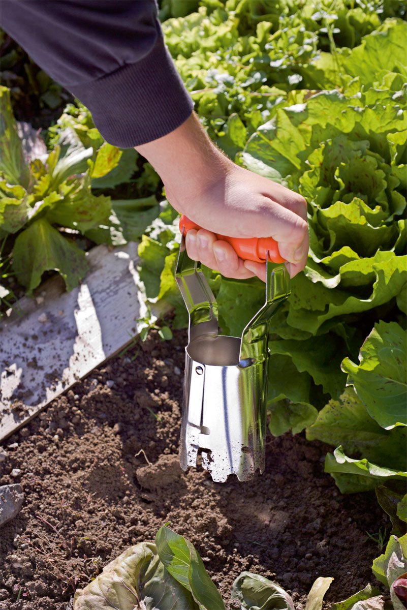 делает отверстие в земле, и лук или черенки могут быть посажены без особых усилий.