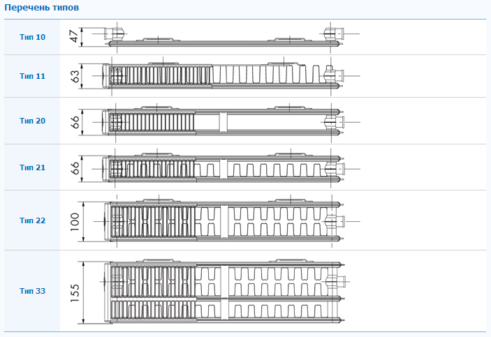 Тип 10 — не имеет облицовки, в нем отсутствует конвектор и применен только один ряд панелей.