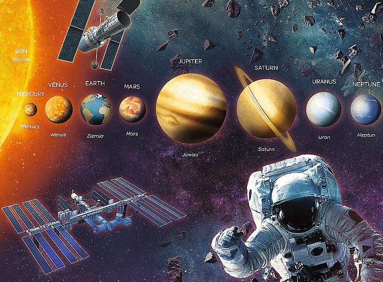 Пазлы состоят из 25-ти элементов с изображением космического пространства с расположенными в нем орбитальными космическими станциями и планетами нашей Солнечной системы.