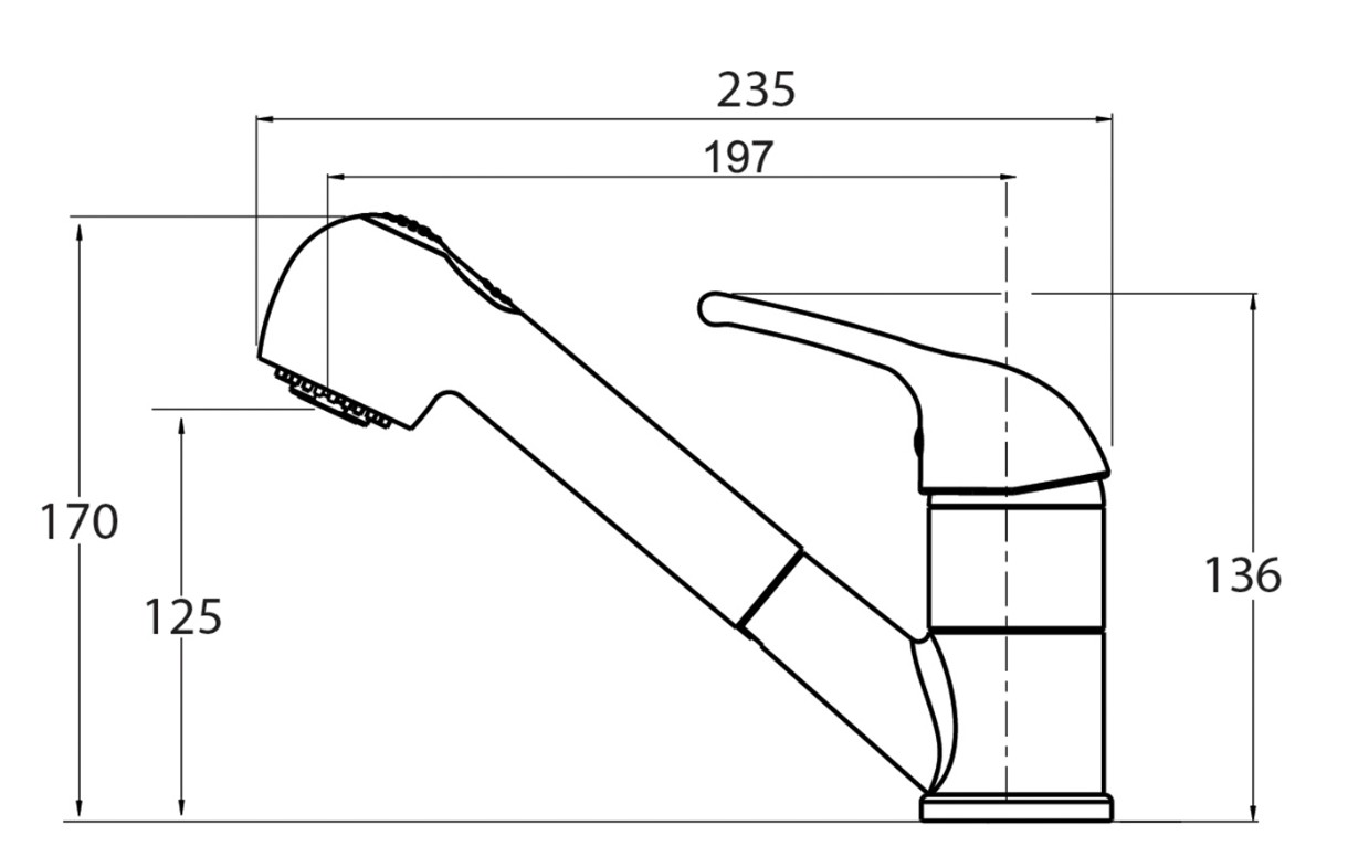 Длина излива197 мм