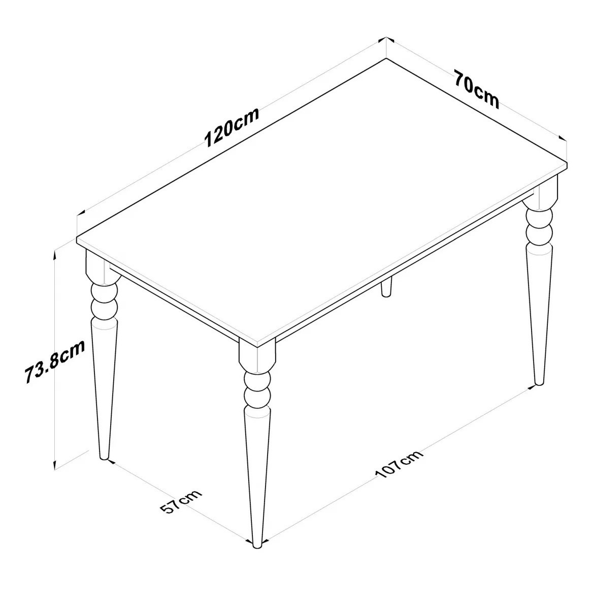 Собирайте близких за этим элегантным обеденным столом и наслаждайтесь приятными моментами. Ширина 120 см обеспечивает комфортное пространство для общения, совместных трапез и искренних разговоров.