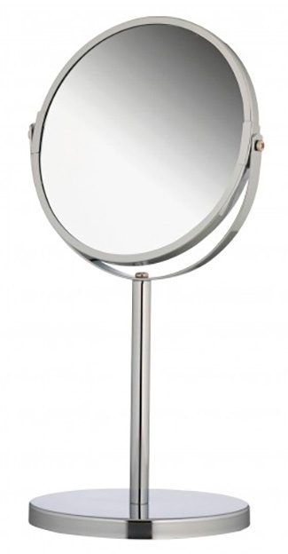 Настольное двухстороннее зеркало Axentia в оправе из хромированной стали имеет влагостойкое покрытие и регулятор наклона. Оно будет удобным в ванной комнате или на туалетном столике. У зеркала две поверхности, одна из которых дает обычное отражение, другая — с трехкратным увеличением. У зеркала отсутствует геометрическое искажение.