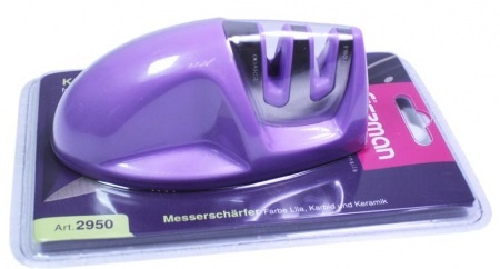 Точило для ножей от FISSMAN имеет двухуровневую заточку, затачивает лезвие целиком. Стальные прутики и керамические абразивные камни внутри прорези придают кромке лезвия V — форму под правильным углом. Точило удобно использовать как правше, так и левше.