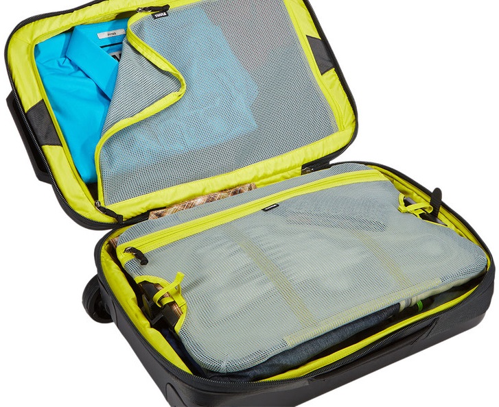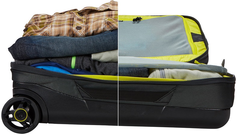 Вместительные отделения, раздельное хранение одежды (например, чистой и грязной) за счет внутренней прижимной панели;
