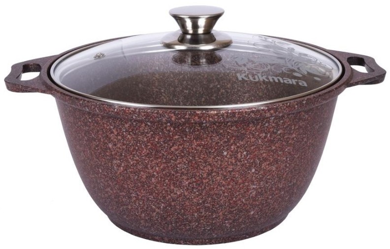 Проточка необходима для улучшения теплопроводности посуды (без проточки дна посуда дольше нагревается, т.к. любое покрытие уменьшает степень теплопроводности алюминия) и для выравнивания дна. Чем больше площадь соприкосновения дна посуды с плитой, тем быстрее и равномернее прогревается посуда. К тому же проточка дна позволяет использовать посуду как на традиционных газовых, электрических, так и на стеклокерамических плитах. На дне каждого изделия имеется логотип «Kukmara».