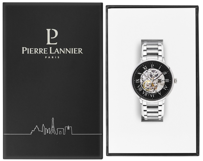 Французские часы Pierre Lannier из коллекции Automatic притягивают взгляды. Необычный черный циферблат с римскими цифрами через небольшое окошко позволяет Вам видеть движущийся механизм часов как спедери, так и сквозь прозрачную заднюю крышку. Широкий браслет из нержавеющей стали, как и корпус часов, выполнен в серебристом цвете. Откройте для себя мужественную элегантность, надев эту модель часов Pierre Lannier.