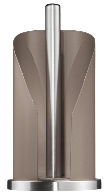 Стильный держатель бумажных полотенец очень удобен в использовании.Корпус из лакированной нержавеющей стали, сбоку которого есть отверстие для аккуратного отрыва полотенца. Декоративное кольцо в основании обеспечивает устойчивость держателя. Подходит для стандартных рулонов бумажных полотенец или двух рулонов туалетной бумаги. Оригинальный держатель с полотенцами прекрасно впишется в интерьер любой кухни. Нельзя мыть в посудомоечной машине.