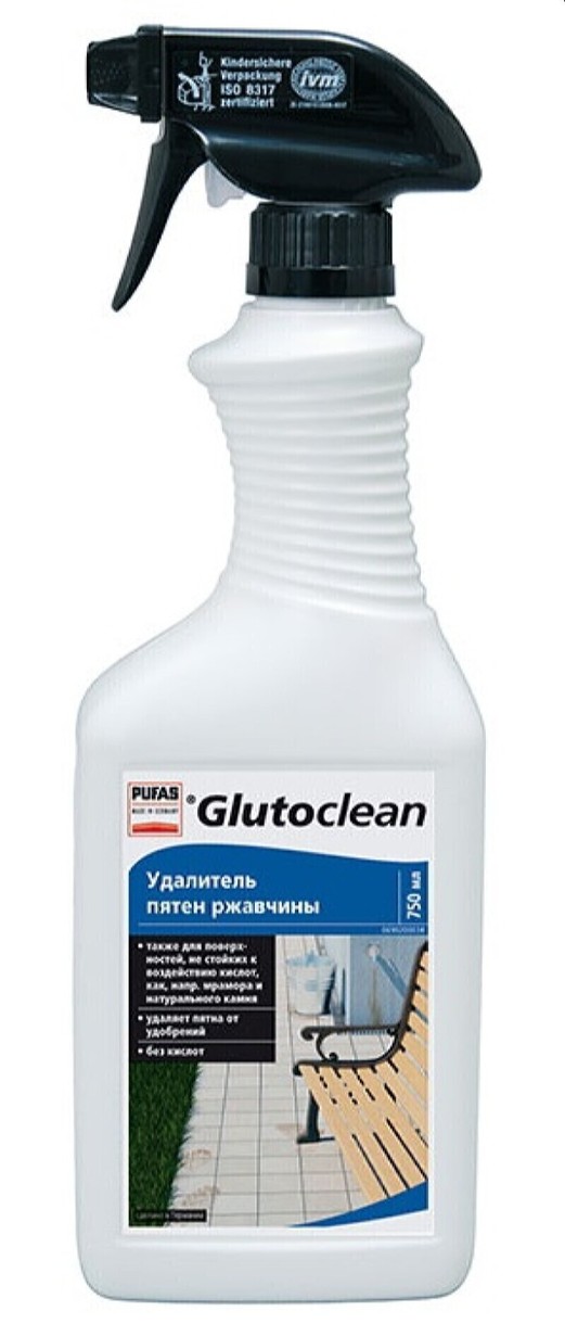 Pufas Glutoclean 390 380-R - это удалитель пятен ржавчины и других оксидов металлов на всех натуральных и искусственных камнях, облицовочной плитке и керамических поверхностях.