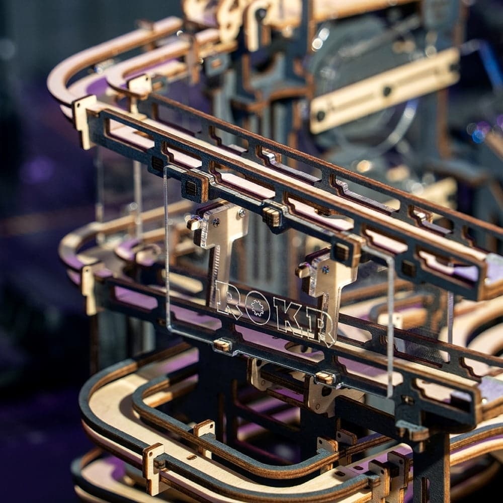 Деревянный мраморный лабиринт ROBOTIME 3D работает от ручного привода, механическое вращение шестеренок, бесконечная петля стальных шариков (в комплект входят 10 металлических шариков), вы можете почувствовать очарование техники.