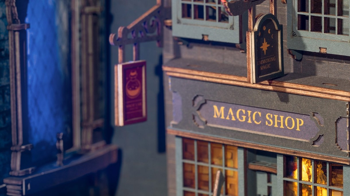 Magic House Book Nook - это декоративная вставка для книжной полки в виде таинственного переулка, которую вы можете соорудить своими руками. Она будет выглядеть потрясающе, когда вы поместите ее в темноте с включенной подсветкой. Этот конструктор для книжной полки может помочь развить ваше воображение и повысить креативность, а еще является идеальным подарком для детей и взрослых.