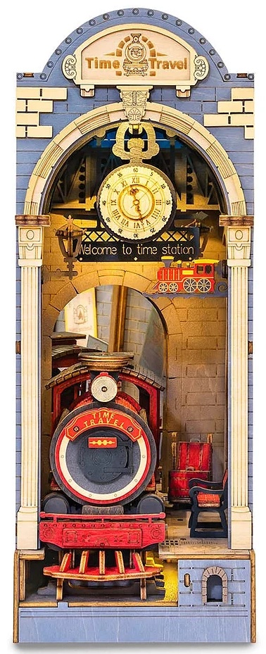 Robotime Rolife Time Travel Book Nook - это декоративная вставка для книжной полки в виде железнодорожной станции, которую вы можете соорудить своими руками. Она будет выглядеть потрясающе, когда вы поместите ее в темноте с включенной подсветкой. Этот конструктор для книжной полки может помочь развить ваше воображение и повысить креативность, а еще является идеальным подарком для детей и взрослых.