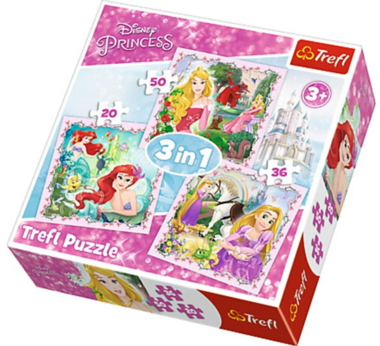 Пазл Trefl 3in1 Rapunzel Aurora and Ariel (34842) фото №1 — интернет-магазин Desire.md