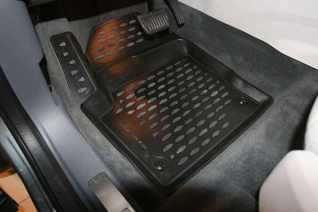 Коврики в салон для Land Rover Discovery Sport 2014+ изготовлены из экологически чистого полимерного материала. Представленные коврики пластичны, не боятся химически активных веществ. Одним из плюсов является фиксация ковриков специальными крепежами. Производитель гарантирует, что во время движения автомобиля коврики не сдвинутся с места. Конструкция ковриков исключает блокирование педали тормоза, акселератора или сцепления. Нужно отметить, что передние коврики имеют специальный язычок, который закрывает площадку отдыха левой ноги, а задние коврики соединены между собой перемычкой.