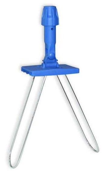 Рамочный складной держатель с синей пластиковой основой и шарнирным соединением. Подходит к мопам "с кармашками" шириной 80 см для сухой уборки. Универсальное крепление-кольцо позволяет использовать с любой ручкой диаметром 20-24 мм.