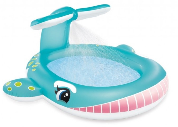 Бассейн для малышей не должен быть скучным и тусклым, ведь кроха не обратит на него внимание. А этого забавного кита невозможно не заметить, ведь он выглядит очень реалистично и ярко, а еще он освежит малышей в жаркий летний денек вылетающими из разбрызгивателя струйками воды.