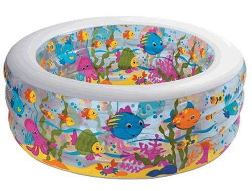 Круглый надувной бассейн Аквариум INTEX 58480NP выполнен их супер прочного шершавого винила. Оснащен двумя воздушными камерами с двойными клапанами и надувным полом, что делает его применение абсолютно безопасным и комфортным для ребенка. Высокие прозрачные бортики позволят детворе понырять и поплескаться в бассейне. Ну, а родители смогут принять приятную прохладную ванну под жаркими лучами летнего солнышка. Для ребенка от 3 лет.