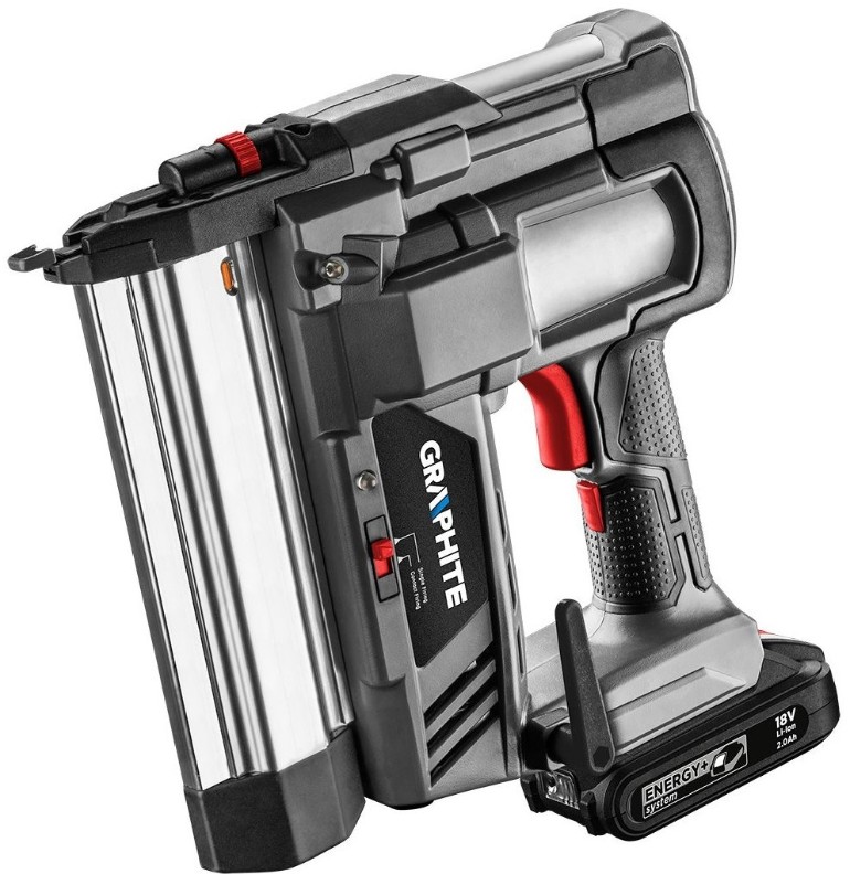 Аккумуляторный гвоздодер и степлер 18V, Li-Ion, макс. количество операций 100/мин, среднее количество операций 60/мин, макс. длина скоб/гвоздей 40/50мм, тип скрепок/гвоздей 18Ga, макс. вместимость магазина 100 шт, вес 2,7 кг, совместимость с батареями Energy +