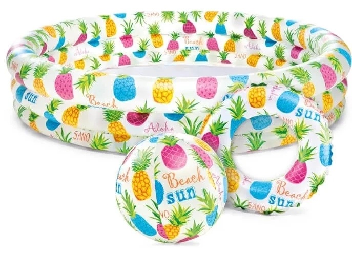 Intex 59469 Надувной бассейн – «Круг» — отличная возможность побаловать свое чадо в жаркие летние дени! На дачном участке будет отлично смотреться стильная и модная раскраска стенок бассейна. Intex 59469 Надувной бассейн будет хорошим украшением на любой поляне или лужайке перед домом. Также этот надувной бассейн Intex 59469 (Интекс) Вы сможете взять с собой на реку или море. Он не будет отягощать Вас, благодаря своему легкому весу и компактному размеру. Ребенка можно научить носить воду для заполнения чаши надувного бассейна Intex 59469 водой. Вы отлично проведете время и приобщите ребенка к труду! Надувные бассейны Intex 59469 (Интекс) сделаны из высоко-прочного винила нового поколения. Имеет в наличии две самостоятельные надувные камеры с двойными клапанами. Бассейн надувной для детей от 1 года. Дополнительно в комплекте имеет надувные круги и мяч.