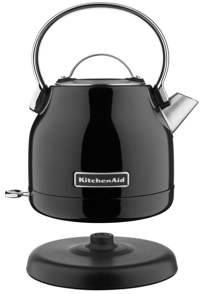 Объем куполообразного чайника KitchenAid 5KEK1222EOB составляет 1,25 литра. Электроприбор элегантно выглядит, не занимает много места на кухне и быстро нагревает воду.