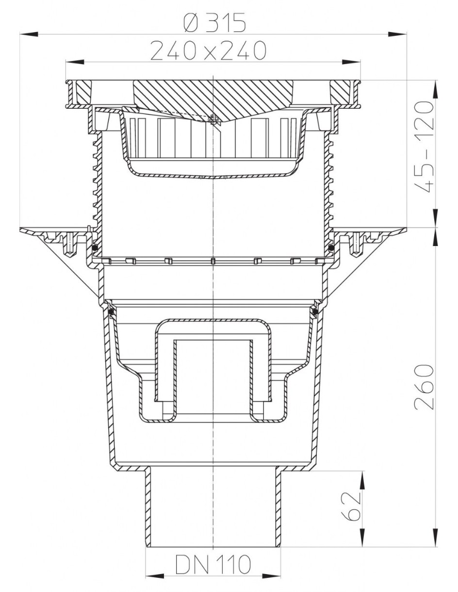 Трап HL 616W/1 с гидрозатвором 50 мм, предназначенный для отведения стоков с уровня пола в канализационную систему. Есть возможность отведения сточных вод с гидроизоляции. Трап отличается высокой пропускной способностью, которая может достигать 2,1 л/с. Также на него может оказываться высокая нагрузка - устройство выдерживает нагрузку до 7 тонн. Имеется решётка 226*226 мм, оснащённая подрамником с размерами 240*240 мм. Высоту надставного элемента данного трапа при необходимости можно регулировать от меньшего к большему. Регулировка высоты надставного элемента производится при помощи резки. Диаметр выпускного патрубка 110 мм, трап соединяется с раструбными трубами, изготовленными из ПП или ПВХ.