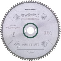 Пильный диск METABO MULTI CUT (628083000) Универсальное применение со сложными материалами. При высочайших требованиях к качеству реза, например, ламинат, тонкостенные полимерные, алюминиевые, медные, латунные профили. Идеально подходит для многих задач внутренней отделки. Превосходные результаты также при поперечной резке цельной древесины, необработанных древесностружечных панелей, с покрытием или фанеровкой, МДФ. Требуется очень большая мощность циркулярной пилы. Особенно большой срок службы благодаря наивысшему качеству твердого сплава и тонкошлифованным зубьям. Точное резание с низким уровнем шума и сведенной к минимуму вибрацией благодаря вырезанным лазером расширительным канавкам (и частично лазерному рисунку), а также вырезанному лазером несущему полотну пилы из высококачественной стали.