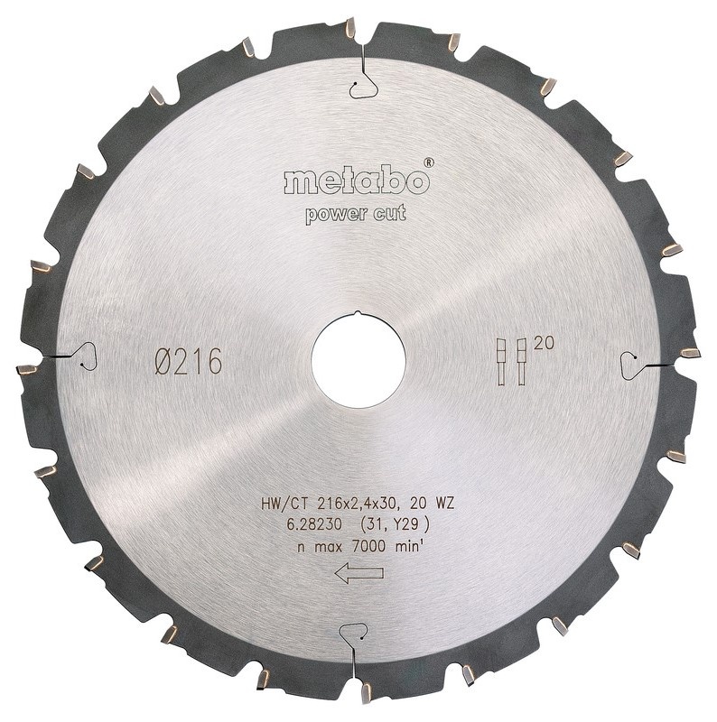 Пильный диск Metabo 628230000 предназначен для грубого распила цельной древесины, облицованной древесины или иных многослойных материалов. Диск подходит для пил Metabo KS 216 M Lasercut / KGS 216 M / KGSV 216 M / KGSV 72 Xact / KGSV 72 Xact SYM.