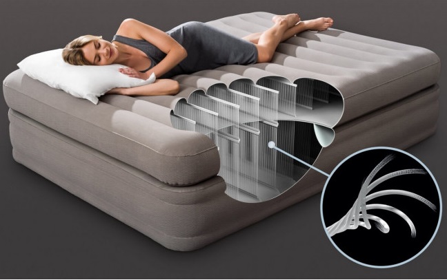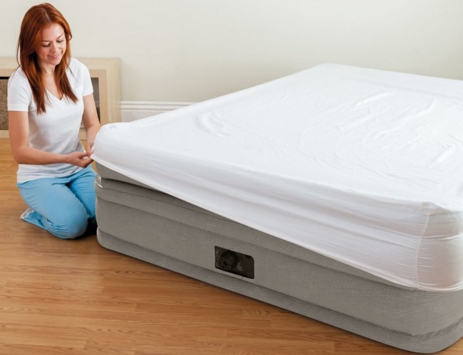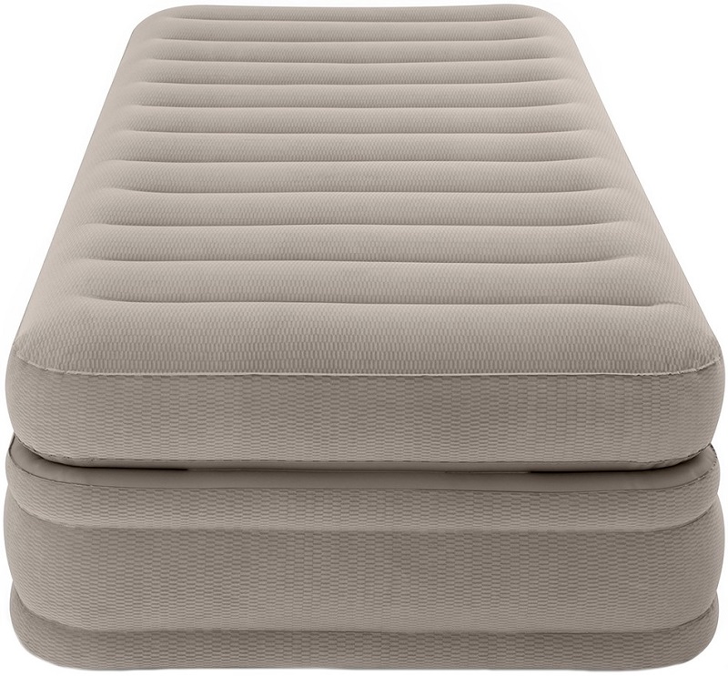 В этом случае идеально подойдет надувная кровать Intex 64446 Prime Comfort Elevated Airbed. За счет производительного электронасоса, который идет в комплекте, в считанные минуты можно организовать спальное место длиной 203 см шириной 152 см и высотой 51 см.