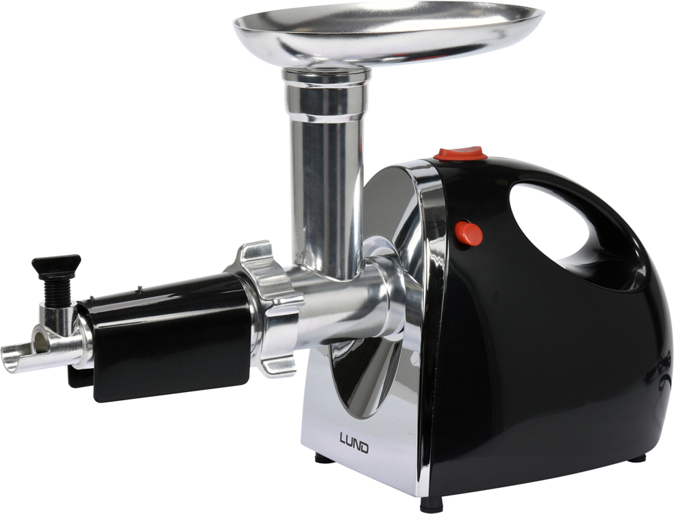 Многофункциональная мясорубка 5in1 от LUND с максимальной мощностью 1200 Вт и производительностью 1,5 кг / мин. Он оснащен высококачественными лезвиями из нержавеющей стали и металлическими лотками и 3 ситами с различными диаметрами отверстий. Это позволяет измельчать мясо различной толщины, измельчать овощи, выжимать соки, заправлять колбасы и готовить кеббе.