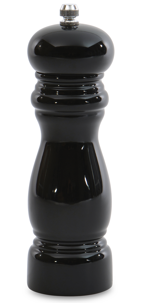 Мельница для перца изготовлена из дерева, покрыта черной глянцевой краской. Механизм изготовлен из прочной керамики, с легкостью справится с перчинками или кристаллами соли. Удобный и незаменимый на столе аксессуар. Приятная альтернатива обычной перцемолке. При использовании есть возможность регулировать степень помола и необходимую дозу пряности. Рекомендуется ручная мойка.