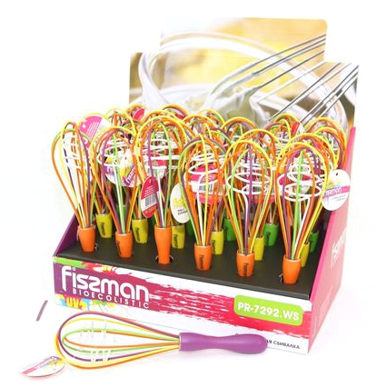 Венчик имеет удобную рукоятку, которая не скользит в руках. Рабочая часть изготовлена из нержавеющей стали, сверху покрытой силиконом, что позволяет не царапать и не портить посуду. Отличаясь не только стильным дизайном, но и функциональностью, венчик создаст особое праздничное настроение на Вашей кухне.