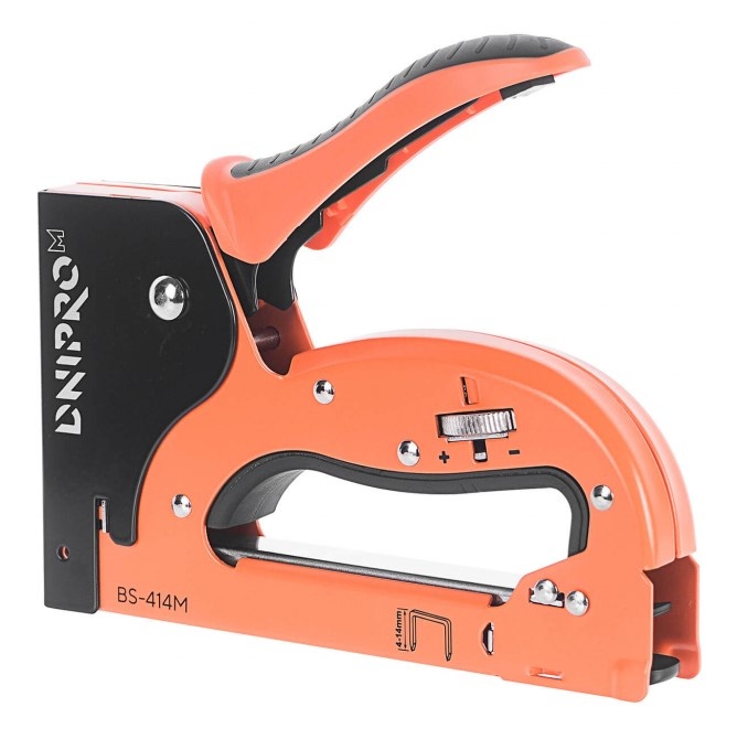 Строительный степлер Дніпро-М БС-414М — оптимальный вариант для надежного скрепления различных материалов (ДВП, ткань и других) с помощью скоб 4-14 мм. Ресурс степлера составляет от 50000 ударов.