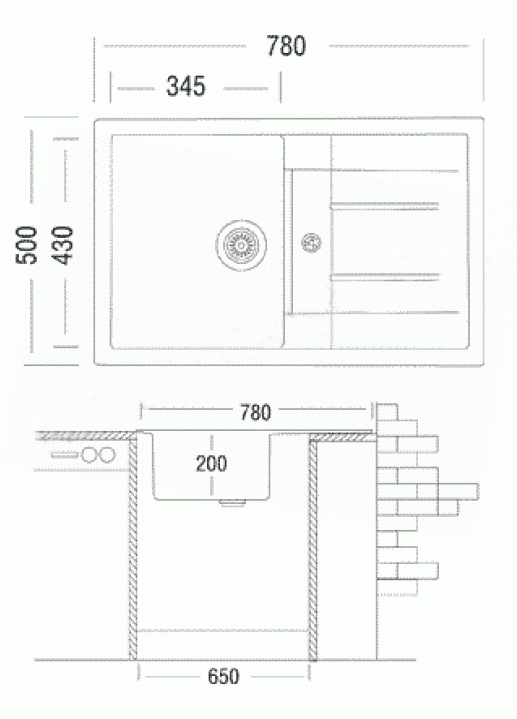 Размер мойки780x500 мм