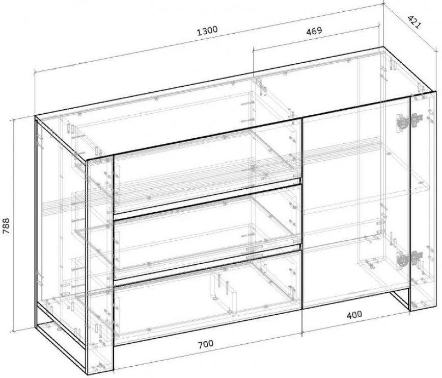 Комод Magnusplus Combo 1300x788x421 Gri Grafit/Stejar Evoke Coast C22