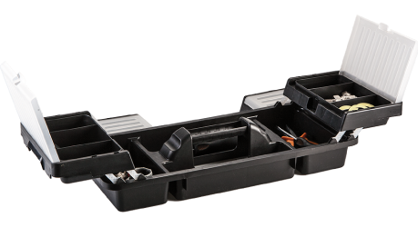 Ящик для инструмента NEO. Практичный и крепкий ящик для инструмента изготовлен из прочной пластмассы, с алюминиевыми замками. Ящик оснащен 2 органайзерами для хранения мелких элементов, раскладной внутренней секцией и удобной алюминиевой ручкой для переноски. Бренд NEO оправдывает ожидания профессионалов.