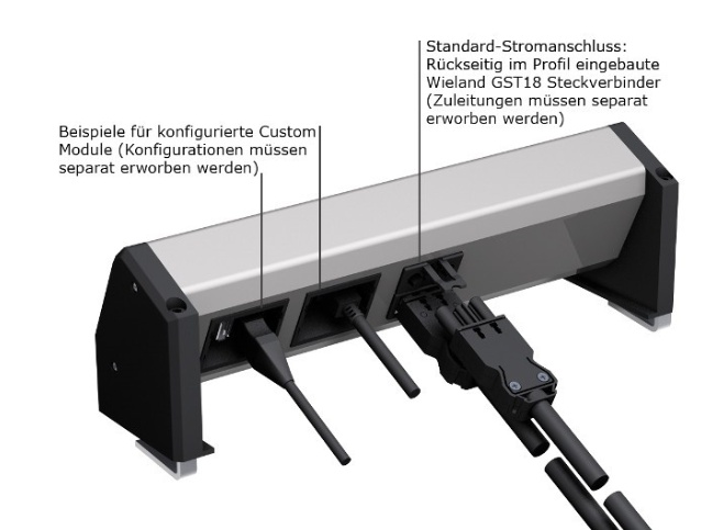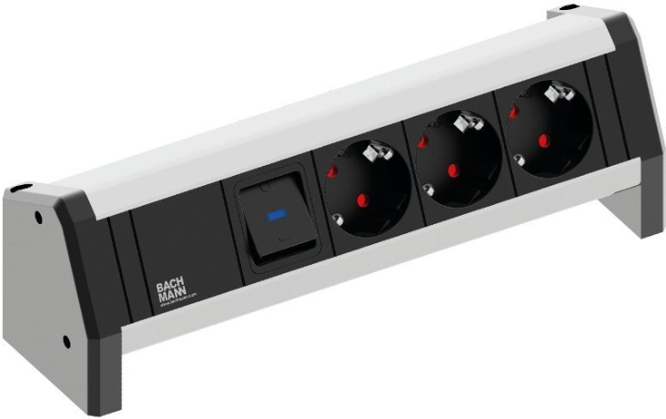 Блок с 3-мя электрическими розетками+переключатель. Длина блока 313 мм. Подключение через вход-выход GST18 с тыльной стороны. Корпус выполнен из анодированного алюминия, боковины из высококачественного пластика.