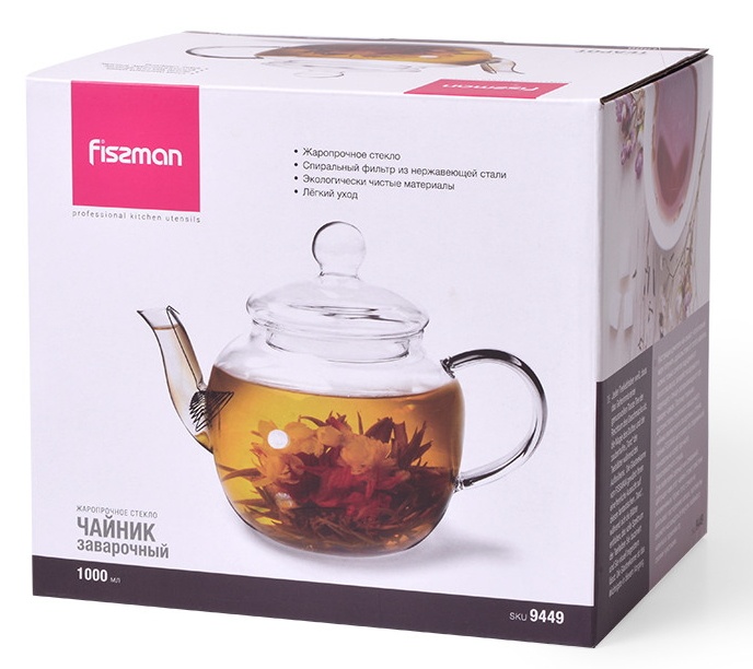 Заварочный чайник изготовлен из жаропрочного стекла. Съемный фильтр из нержавеющей стали, находящийся в носике чайника, позволяет с комфортом заварить любой чай. Чайник FISSMAN изготовлен по современной технологии из особо прочного боросиликатного стекла. Главным достоинством стеклянного заварочного чайника являются его прозрачные стенки. Для любителей зеленых или связанных цветущих чаев этот чайник станет поистине незаменимым. Кроме того, стекло не впитывает посторонние запахи, поэтому вы сможете наслаждаться вкусом любимого напитка в гармонии со своими чувствами.