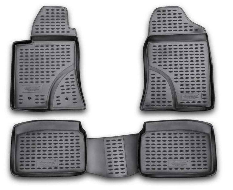 Коврики устойчивы к истиранию. Благодаря высоким бортикам, надежно защищают внутреннюю обивку салона от грязи и снега. Передняя часть водительского коврика уходит под педаль акселератора, что исключает нештатное зацепление педали.