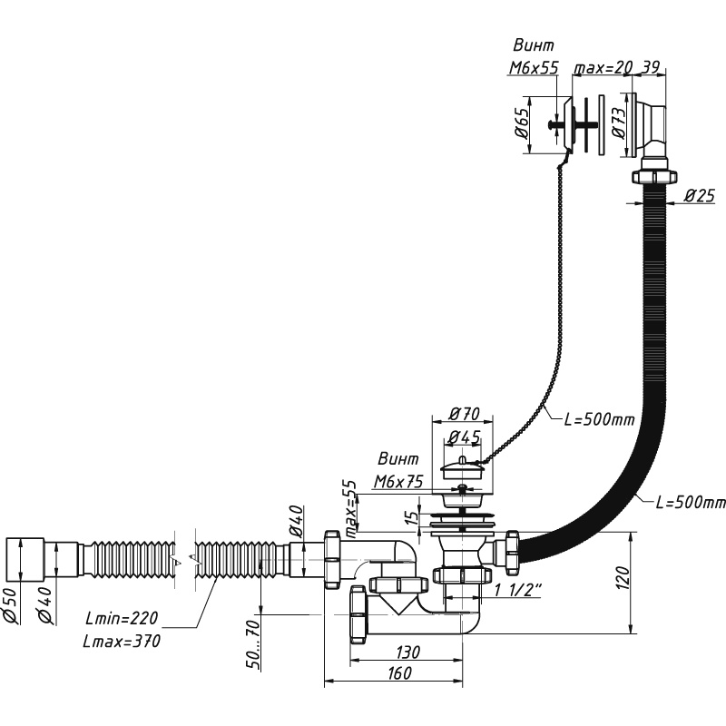 Длина гибкой трубы220-370 мм