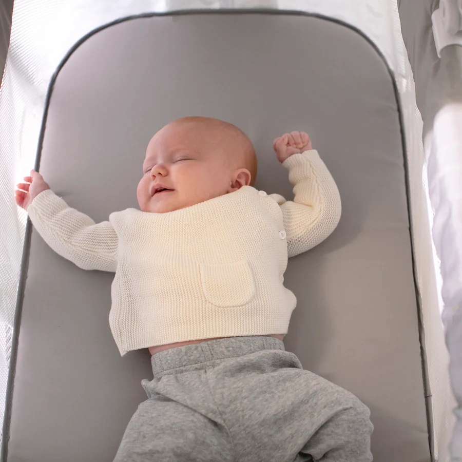 Идеальная кроватка для родителей, которые ведут активный образ жизни и хотят максимального комфорта для своих малышей. Её дизайн подходит для любого дома, даже рядом с кроватью родителей, Вибрации успокаивают ребенка, особенно при коликах. Колеса блокируются для большей безопасности. Включает место для хранения, чтобы вещи вашего малыша всегда были под рукой. Сетчатые боковины позволяют лучше видеть ребенка, когда он спит.