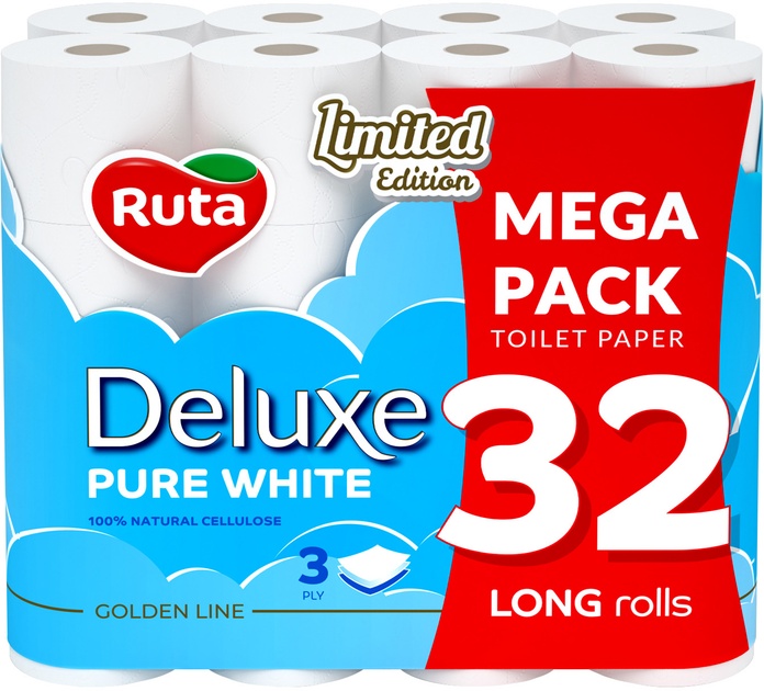 Туалетная бумага Ruta Pure White Deluxe 3 plies 32 rolls
