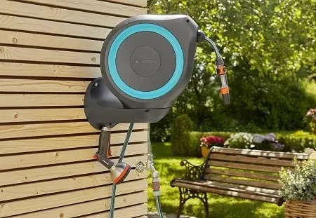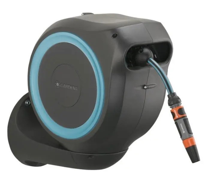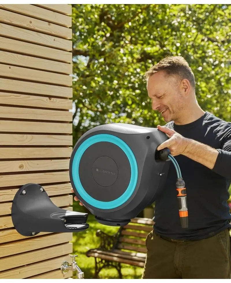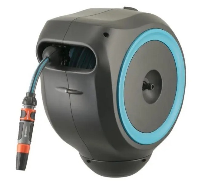 Катушка со шлангом настенная автоматическая Gardena Roll-Up S Automatic удобная и гибкая система полива cо шлангом 11 мм длинной 15 метров для небольших садов.
