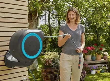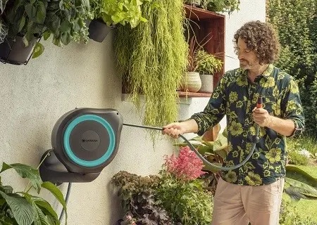 Полив сада удобнее и проще, чем когда-либо, благодаря катушке со шлангом настенной автоматической Гардена Roll-Up S Automatic настенная 15 м.