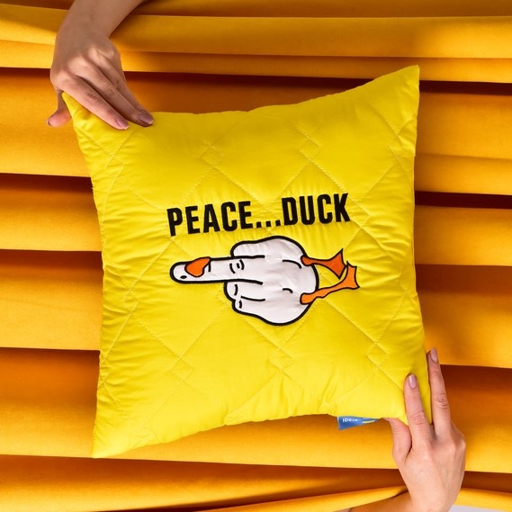 Подушка “Peace Duck” — это не просто элемент декора, а отличное решение для подарка. Она подойдет как сувенир для друзей или коллег, любящих оригинальные вещи, так и для тех, кто хочет добавить в свой интерьер немного юмора и позитива. Ее необычный дизайн и символический подтекст привлекут внимание и обязательно вызовут улыбку у любого, кто ее увидит.