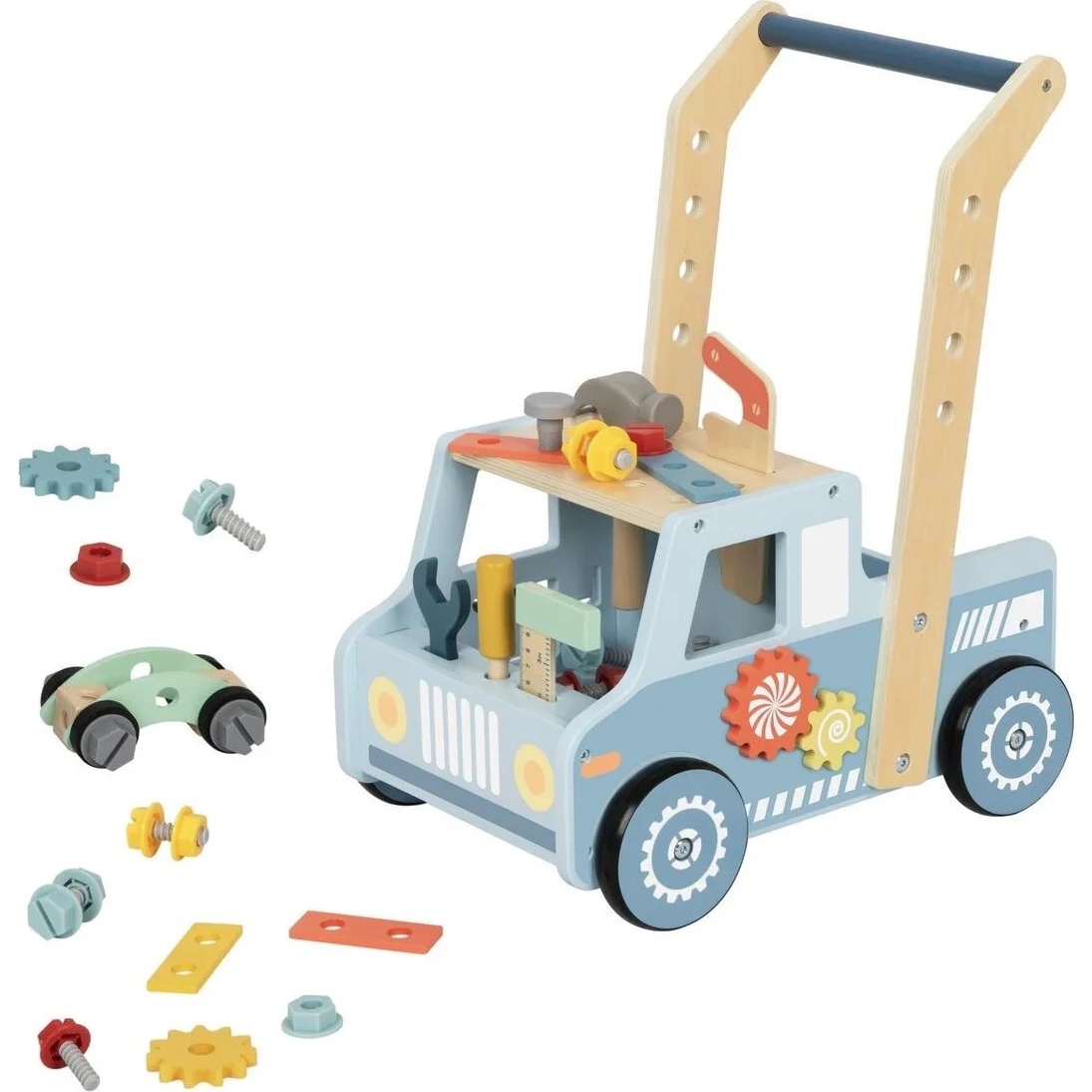Деревянный набор инструментов Tooky Toy «Грузовичок» — это игрушка 2 в 1, объединяющая веселье и развитие моторики и креативности. Игрушка выполнена в форме грузовика и служит как верстак для инструментов, так и ходунки, предоставляя детям множество интерактивных занятий.