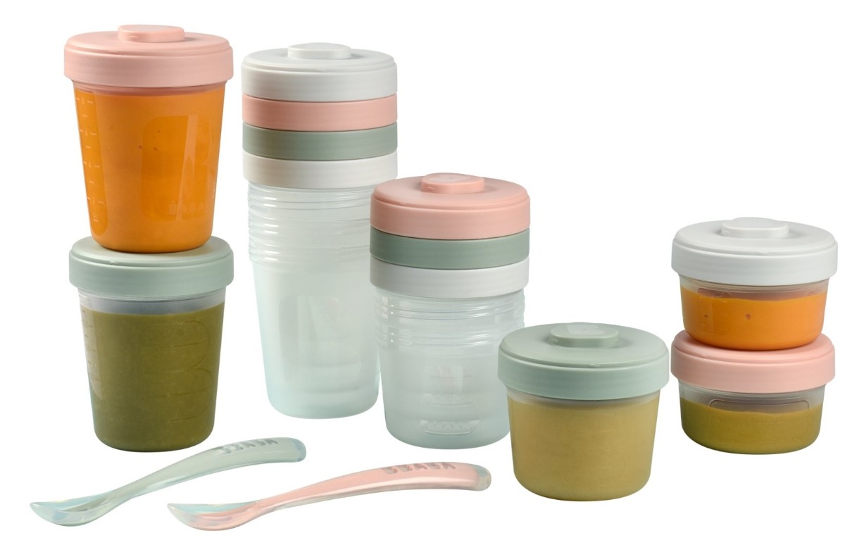 Прочные и герметичные, вы можете положить их в детскую сумку без риска протекания. Изготовленные из высококачественного полипропилена, их можно хранить в холодильнике и морозильной камере. В них без труда вы сможете разморозить и разогреть (без крышки) в микроволновой печи, чаше Babycook и водяной бане (в Bib-Expresso).