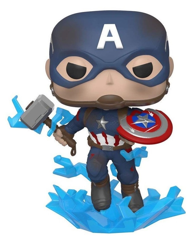 Фигурка Funko POP Marvel - Captain America with Broken Shield and Mjolnir (573) в виде персонажа Капитана Америки с Мьельниром и сломанным щитом. Фигурка создана по мотивам супергеройских комиксов и фильмов вселенной Марвел.