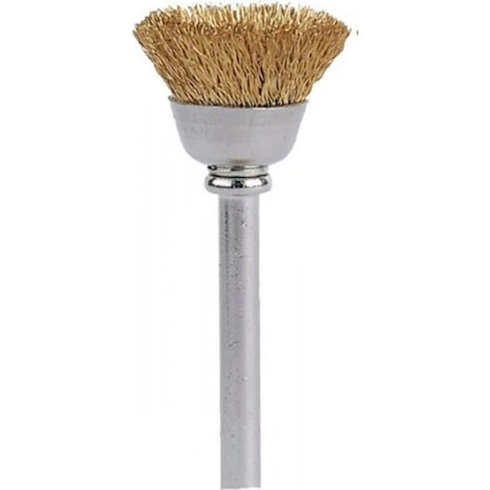 Щётка из латуни Dremel 536 (26150536JA) - деликатно, не царапая, обрабатывает мягкие металлы: золото, медь, латунь. Не такие жесткие, как сталь, эти щетки во время работы не создают искр.