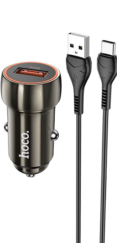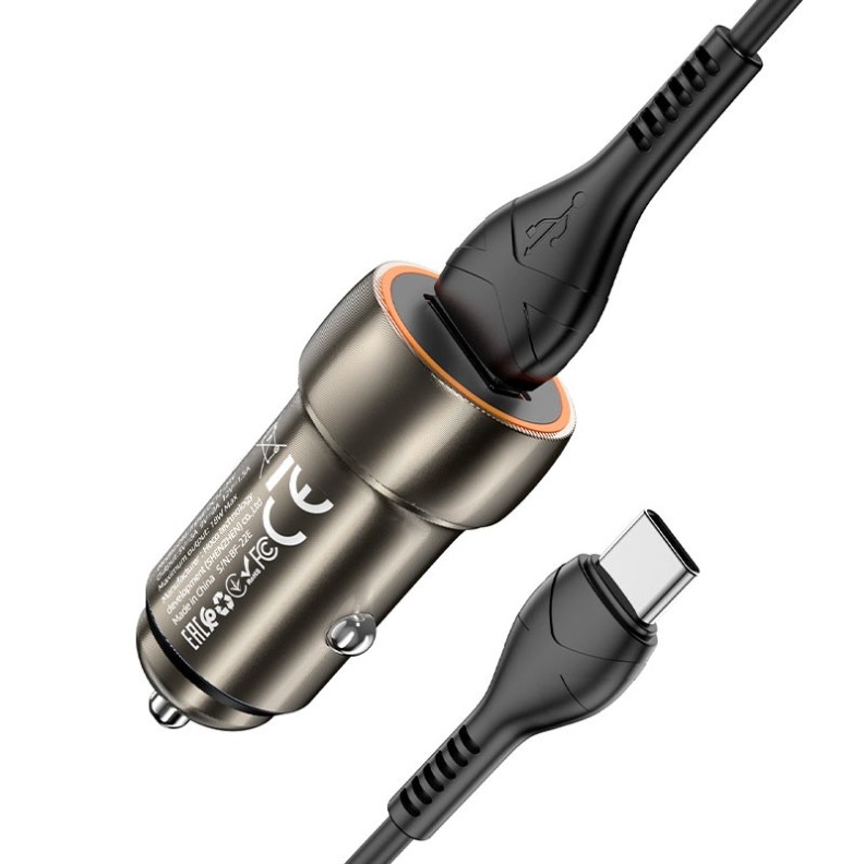 Автомобильная зарядка Hoco Z46 Blue Shield + Type-C Metal Gray
