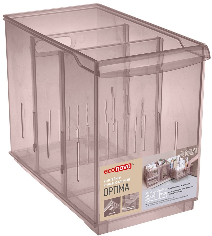 — Контейнер универсальный OPTIMA от Econova с роликами подойдёт для хранения различных предметов (химии, кухонных предметов, инструментов, игрушек и пр.).
